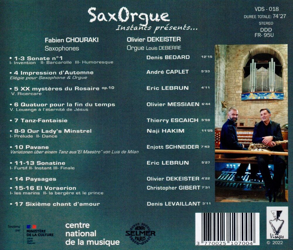Performers on recording: Fabien Choraki (Saxophone) and Olivier Dekeister at the Louis Debierre-Organ in Paris.