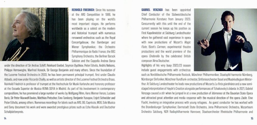 Introduction: Es gehört zu den magischen Fähigkeiten der musikalischen Klänge, dass sie intensivste „Gegenwart“ und ein vitales „Jetzt!“ erzeugen. Deshalb können in diesen ZEITREISEN vergangene Epochen ins 21. Jahrhundert geholt werden und zeitliche Dimensionen eine sinnliche Verlebendigung erfahren: Genau 400 Jahre vor dieser CD-Einspielung ist William Byrd (1543-1623) verstorben und wird hier mit dem grandiosen THE BELLS zum Leben wiedererweckt. BRANDENBURGER REMIXED wurde als Hommage zum 300. Geburtstag des Brandenburgischen Konzerts Nr. 2 komponiert, dessen legendär virtuoser Trompetenpart bis heute „die“ Messlatte für alle Trompetensolisten darstellt. Das Saxophonkonzert SIDDHARTA wurde 2021 zum hundertdsten Jahrestag der Erstausgabe von Hermann Hesses vielmillionenfach akklamiertem Roman komponiert, in dem Hesse so beispiellos treffend einen lebendigen Buddha beschrieb, der uns um etwa 2500 Jahre in die Vergangenheit rückführt. SILK ROAD schließlich bezieht sich auf den wohl prominentesten Entdeckungsreisenden Marco Polo, der vor genau 700 Jahren im Januar 1324 in seinem Geburtsort Venedig gestorben ist. Holen wir uns also mit der farbenreichen Klangwelt dieser TIME TRAVELS – ZEITREISEN all diese Orte und Zeiten zurück, um sie ganz frisch noch einmal zu erleben.