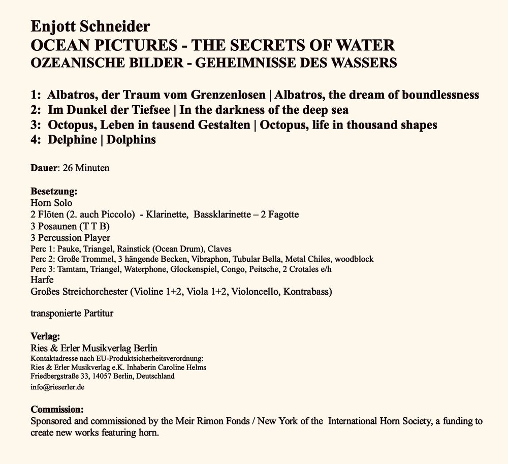 Introduction: The solo horn is the absolute ‘star’ in this symphonic painting of boundless vastness, sublimity, silence and stupendous soundscapes.