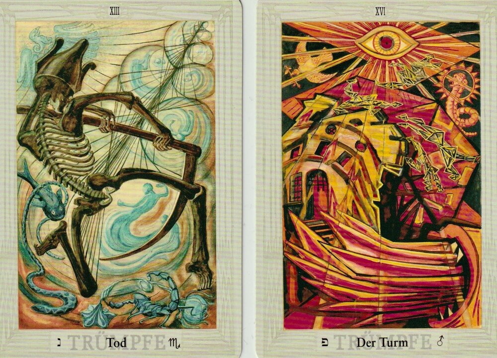 THE TOWER is associated with the Hebrew letter Pé and the energies of Mars. Lightning, flames and the destruction of the old combine with spiritual renewal, newly attained clarity and self-knowledge. Intense, yet often