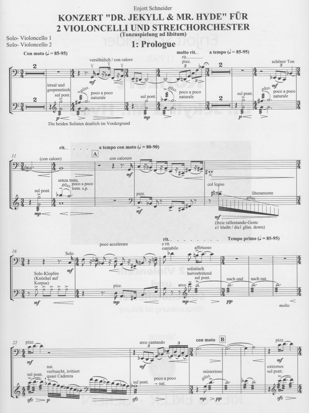 Zwei Solocelli und Streichorchester (V1, Vl2, Vla 1, Vla 2, Vc und Kb )